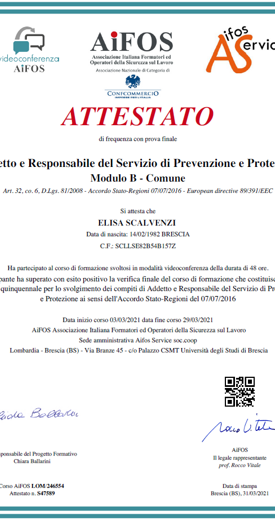 Formatrice in Materia di Salute e Sicurezza sul Lavoro